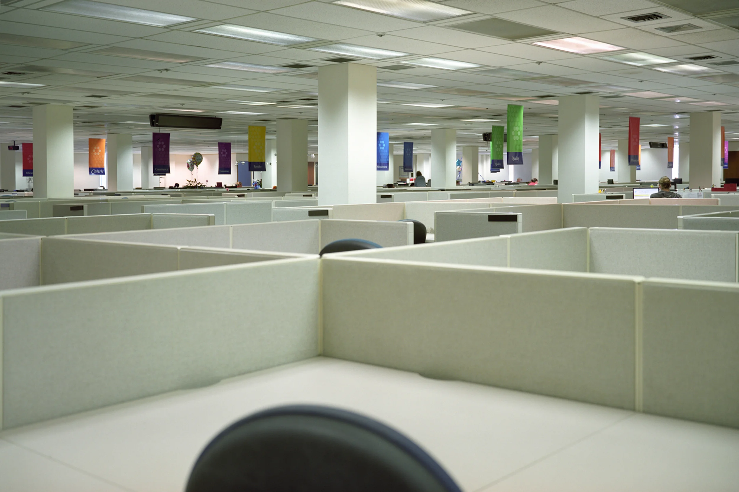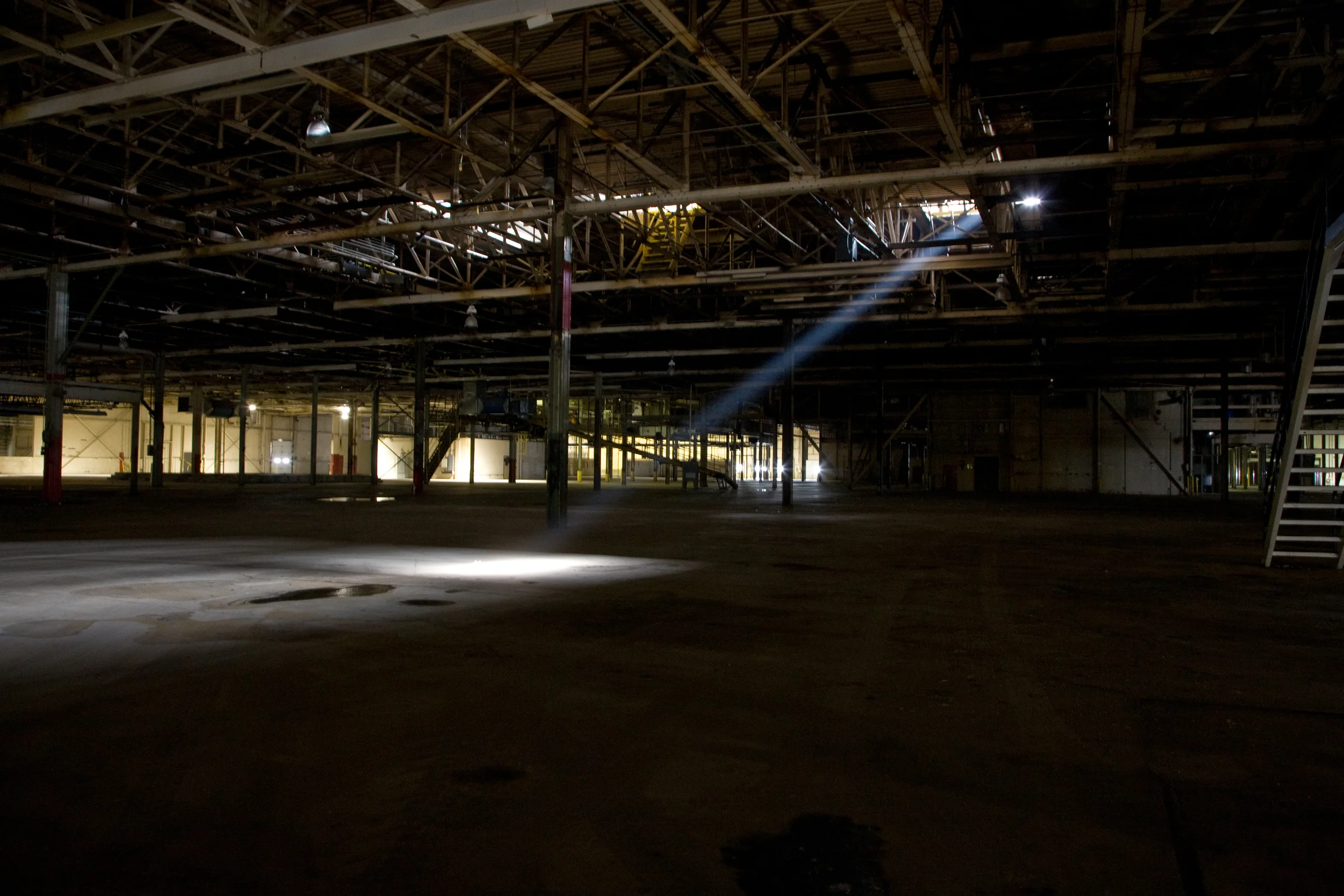 Friges' 16mm film also titled Why Play Leap Frog? (2010) utilizes much of the gutted interior of Maytag's two-million-square-foot main manufacturing plant. Shot and edited as to reflect the continuous flow of the assembly line, the camera's long, smooth tracking shot follows the line of the now absent conveyor belt, and captures the gestures of workers performing repetitive tasks from muscle memory at their former workstations.